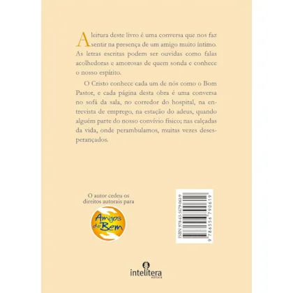 A leitura deste livro é uma conversa que nos faz sentir na presença de um amigo muito íntimo. As letras escritas podem ser ouvidas como falas acolhedoras e amorosas de quem sonda e conhece o nosso espírito. O Cristo conhece cada um de nós como o Bom Pastor, e cada página desta obra é uma conversa no sofá da sala, no corredor do hospital, na entrevista de emprego, na estação do adeus, quando alguém parte do nosso convívio físico; nas calçadas da vida, onde perambulamos, muitas vezes desesperançados.