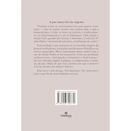 A paz nunca foi tão urgente Vivemos como se estivéssemos em uma guerra constante ? não só contra armas, mas contra tudo o que é essencial para a vida: os bens, os valores, o conhecimento, os relacionamentos e até as lideranças. Tudo muda o tempo todo, guiado por modas e interesses. Como diz Simão Pedro: ?dormem de um jeito, amanhecem de outro.? Fraternidade e paz parecem ter se tornado utopias de poucos sonhadores, trancadas em discursos filosóficos ou versos esquecidos. Mas é justamente nesse cenário que a voz de Simão Pedro se faz necessária. Com seu profundo conhecimento ? entrelaçado à mineirice e o bom humor ? ele nos convida, página a página, a compreender a essência da paz. Mais do que isso: mostra-nos que é possível vivê-la, mesmo em tempos difíceis. Este livro é um abraço. Um descanso. Um reencontro com o que há de mais humano em nós.