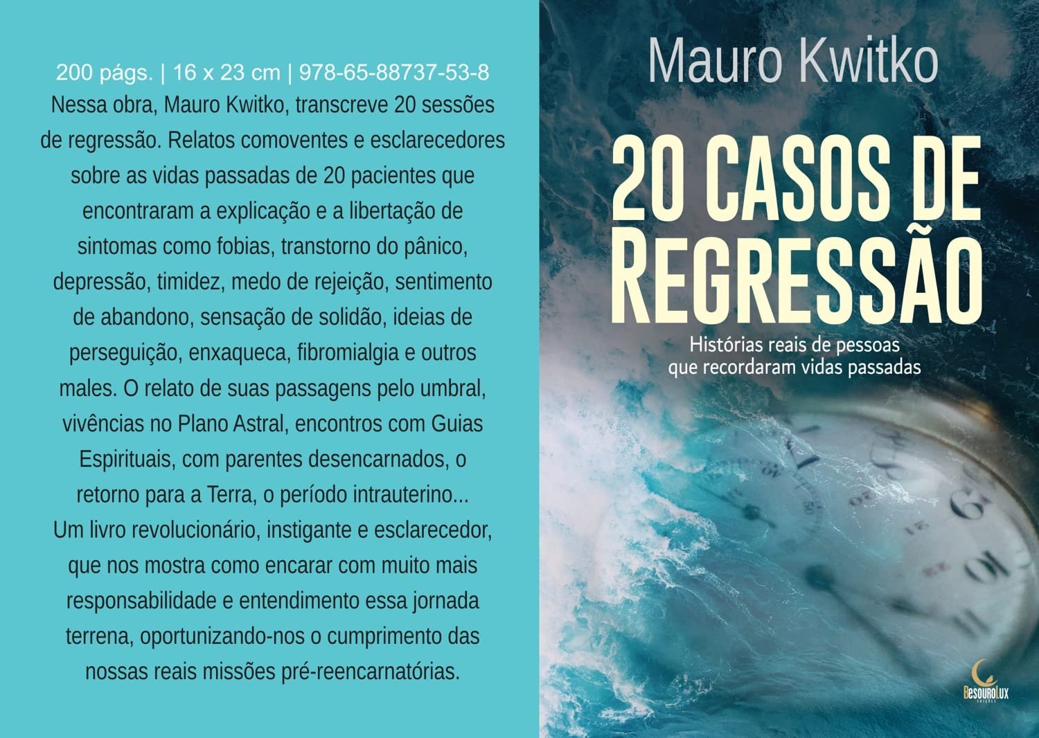 Nessa obra, Mauro Kwitko, transcreve 20 sessões de regressão. Relatos comoventes e esclarecedores sobre as vidas passadas de 20 pacientes que encontraram a explicação e a libertação de sintomas como fobias, transtorno do pânico, depressão, timidez, medo de rejeição, sentimento de abandono, sensação de solidão, ideias de perseguição, enxaqueca, fibromialgia e outros males. O relato de suas passagens pelo umbral, vivências no Plano Astral, encontros com Guias Espirituais, com parentes desencarnados, o retorno para a Terra, o período intrauterino… Um livro revolucionário, instigante e esclarecedor, que nos mostra como encarar com muito mais responsabilidade e entendimento essa jornada terrena, oportunizando-nos o cumprimento das nossas reais missões pré-reencarnatórias.
