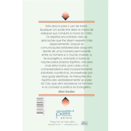 Peso: 0.320 kg Esta obra é para uso de todos. Qualquer um pode tirar dela os meios de adequar sua conduta à moral do Cristo. Graças às comunicações estabelecidas daqui em diante de uma maneira permanente entre os homens e o mundo invisível, a lei evangélica, ensinada a todas as nações pelos próprios Espíritos, não será mais letra morta, pois cada um a compreenderá e será incessantemente solicitado praticá-la, aconselhado por seus guias espirituais. As instruções dos Espíritos são verdadeiramente as vozes do Céu que vêm esclarecer os homens e os convidar à prática do Evangelho. Allan Kardec