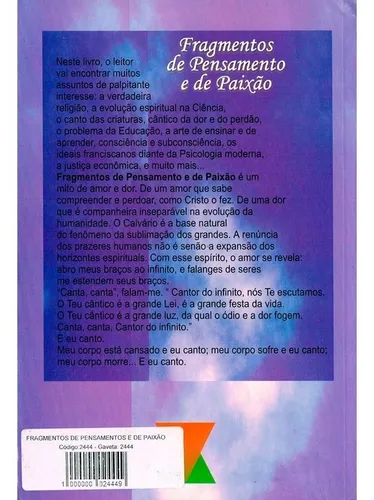 Neste livro o leitor encontrará temas palpitantes como a verdadeira religião, a evolução espiritual na Ciência, o canto das criaturas, o cântico da dor e do perdão, o problema da Educação, a arte de ensinar e de aprender, a consciência e a subconsciência, os ideais franciscanos diante da Psicologia Moderna, a justiça econômica, entre outros temas igualmente empolgantes.