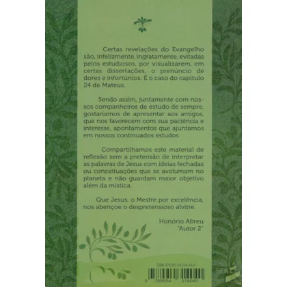 Certas revelações do Evangelho são, infelizmente, ingratamente, evitadas pelos estudiosos, por visualizarem, em certas dissertações, o prenúncio de dores e infortúnios. É o caso do capítulo 24 de Mateus.Sendo assim, juntamente com nossos companheiros de estudo de sempre, gostaríamos de apresentar aos amigos, que nos favorecem com sua paciência e interesse, apontamentos que ajuntamos em nossos continuados estudos.Compartilhamos este material de reflexão sem a pretensão de interpretar as palavras de Jesus com ideias fechadas ou conceituações que se avolumam no planeta e não guardam maior objetivo além da mística.Que Jesus, o Mestre por excelência, nos abençoe o despretensioso alvitre.