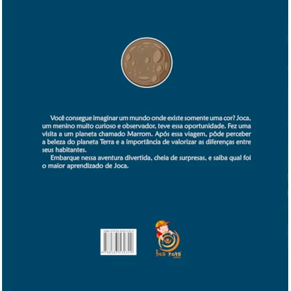 Você consegue imaginar um mundo onde existe somente uma cor? Joca, um menino muito curioso e observador, teve essa oportunidade. Fez uma visita a um planeta chamado Marrom. Após essa viagem, pôde perceber a beleza do planeta Terra e a importância de valorizar as diferenças entre seus habitantes. Embarque nessa aventura divertida, cheia de surpresas, e saiba qual foi o maior aprendizado de Joca.
