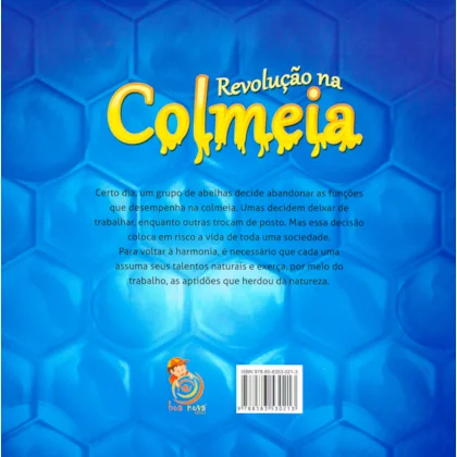 Certo dia, um grupo de abelhas decide abandonar as funções que desempenha na colmeia. Umas decidem não trabalhar, enquanto outras trocam de posto. Mas essa decisão coloca em risco a vida de toda uma sociedade. Para voltar à harmonia, é necessário que cada uma assuma os talentos naturais e exerça, através do trabalho, as aptidões que herdou da natureza. *** Acompanha cartela com adesivos. ***