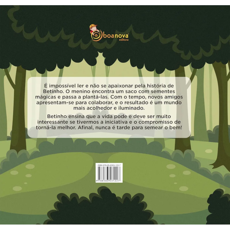 É impossível ler e não se apaixonar pela história de Betinho. O menino encontra um saco com sementes mágicas e passa a plantá-las. Com o tempo, novos amigos apresentam-se para colaborar, e o resultado é um mundo mais acolhedor e iluminado. Betinho ensina que a vida pode e deve ser muito interessante se tivermos a iniciativa e o compromisso de torná-la melhor. Afinal, nunca é tarde para semear o bem!