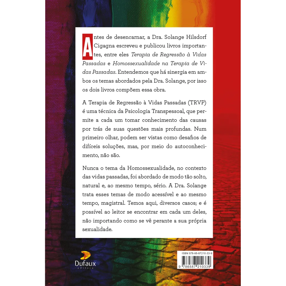 A Terapia de Regressão à Vidas Passadas (TRVP) é uma técnica da Psicologia Transpessoal, que permite a cada um tomar conhecimento das causas por trás de suas questões mais profundas. Num primeiro olhar, podem ser vistas como desafios de difíceis soluções, mas, por meio do autoconheci – mento, não são. Nunca o tema da Homossexualidade, no contexto das vidas passadas, foi abordado de modo tão solto, natural e, ao mesmo tempo, sério. A Dra. Solange trata esses temas de modo acessível e ao mesmo tempo, magistral. Temos aqui, diversos casos; e é possível ao leitor se encontrar em cada um deles, não importando como se vê perante a sua própria sexualidade.