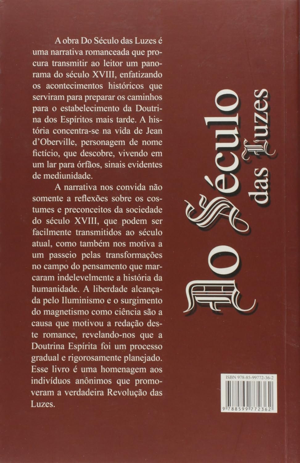 A obra ‘Do Século das Luzes’ é uma narrativa romanceada que procura transmitir ao leitor um panorama do século XVIII, enfatizando os acontecimentos históricos que serviram para preparar os caminhos para o estabelecimento da Doutrina dos Espíritos. Aobra concentra-se na vida de Jean d’Oberville, personagem de nome fictício, que descobre, vivendo em um lar para órfãos, sinais evidentes de mediunidade.